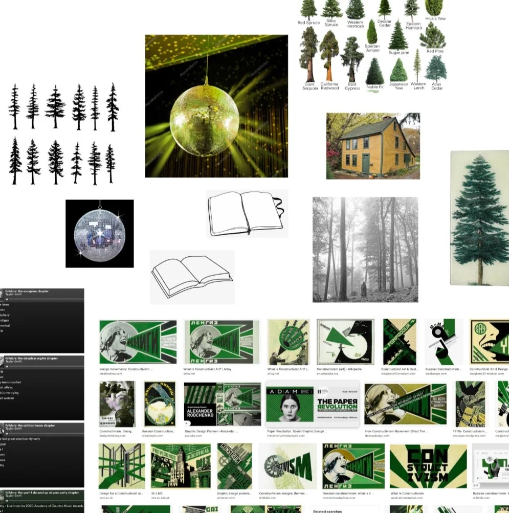 Tasked with creating a poster for a musical artist in the style of Russian Constructivism, I needed to do a fair amount of research and brainstorming. folklore by Taylor Swift may not be a natural pairing for that style of poster, but the blend of the bold angles with the natural forest-scape results in a unique visual composition.